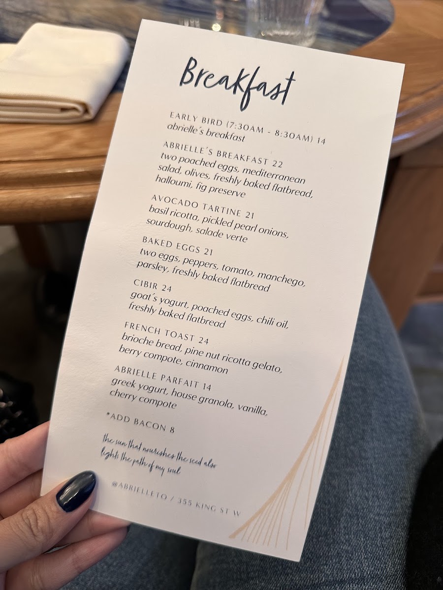 Welcome to Abrielle, a culinary gem nestled in the heart of Toronto at 355 King St W. This vibrant eatery captures the essence of modern Mediterranean cuisine, offering a delightful menu that will tantalize your taste buds. Start your day with a buttery croissant—freshly baked and perfectly flakey for just CA$4.50. Alternatively, indulge in the zesty and moist lemon poppy loaf, bursting with citrus flavor for only CA$4.00.